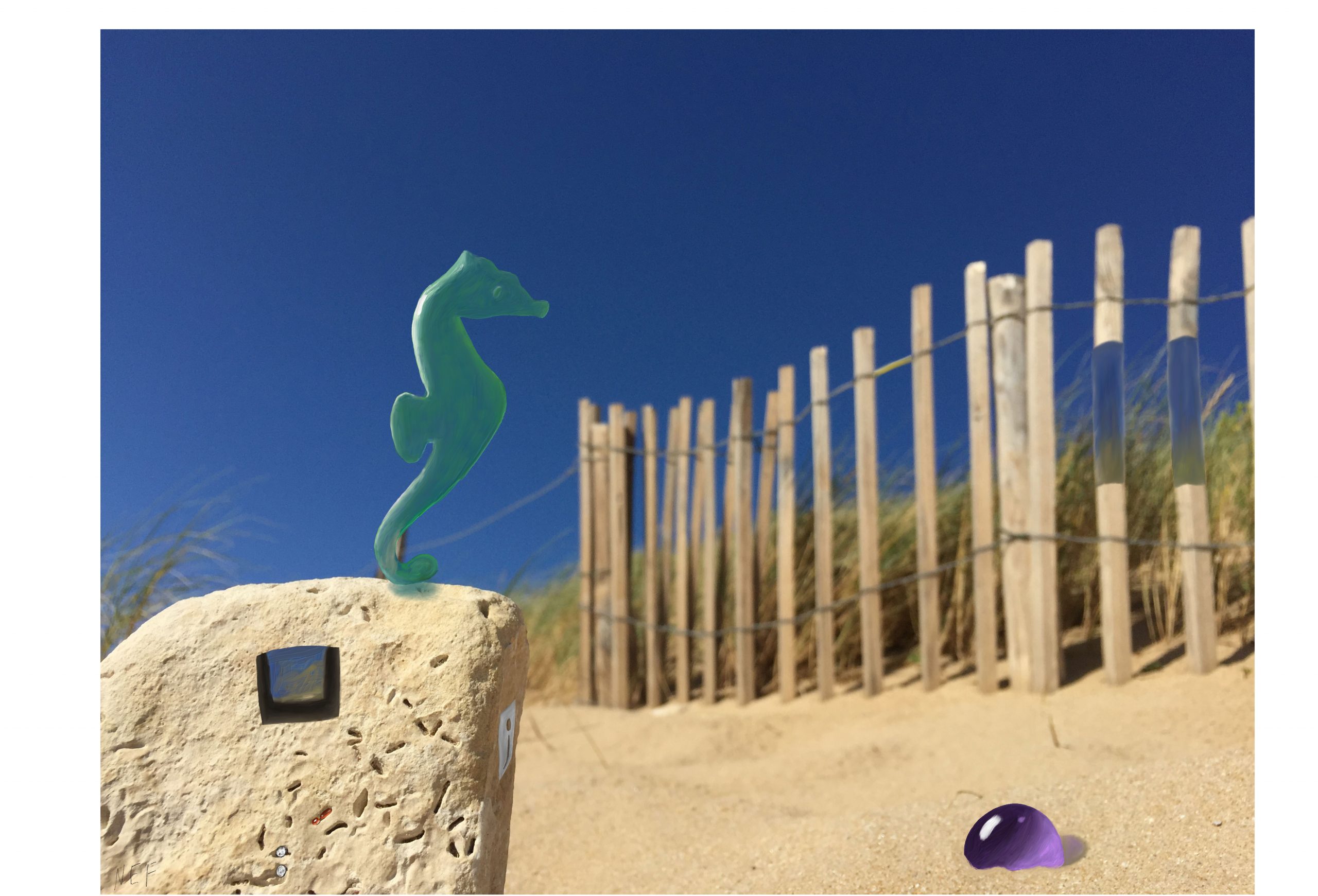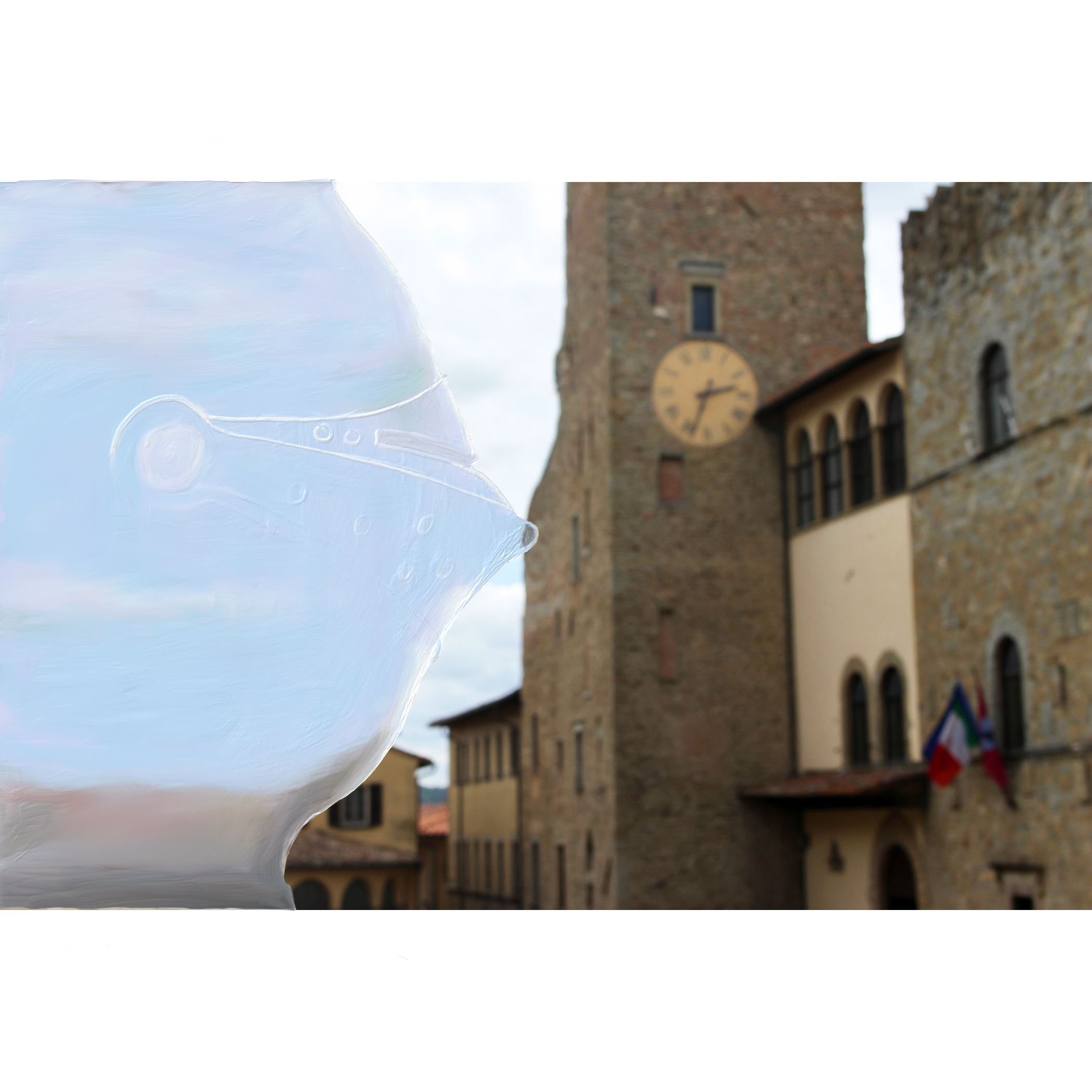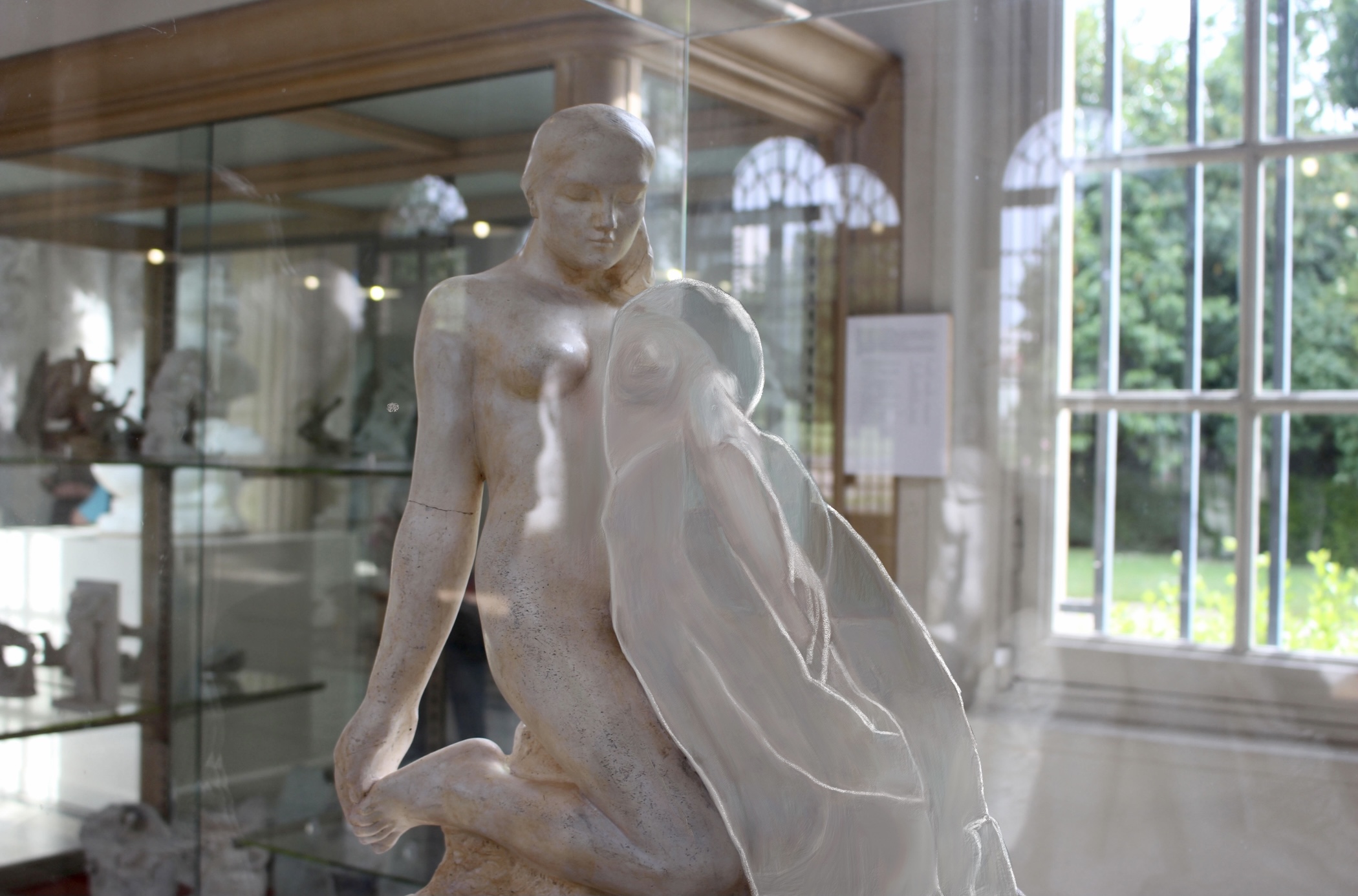 Cette série est partie d’une réflexion sur la transparence. Rendre transparent une partie d’une photo, ce n’est pas effacer, c’est tenter de représenter deux objets simultanément, l’objet disparu et le décor, derrière. C’est particulièrement visible dans l’éternelle idole, où l’homme sculpté s’efface pour laisser apparaitre la femme derrière lui, ce qu’il est impossible de voir dans la réalité. Effacer pour mieux montrer, pour unir aussi.
